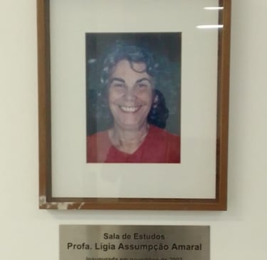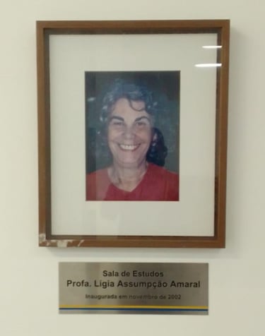Foto de lígia na parede da sala de estudos da biblioteca do instituto de psicologia da usp